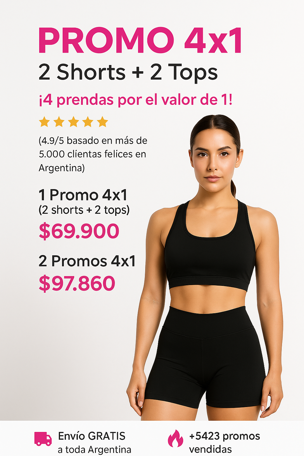 4x1 PROMO | 2 Shorts deportivos + 2 Tops (Calidad Premium)