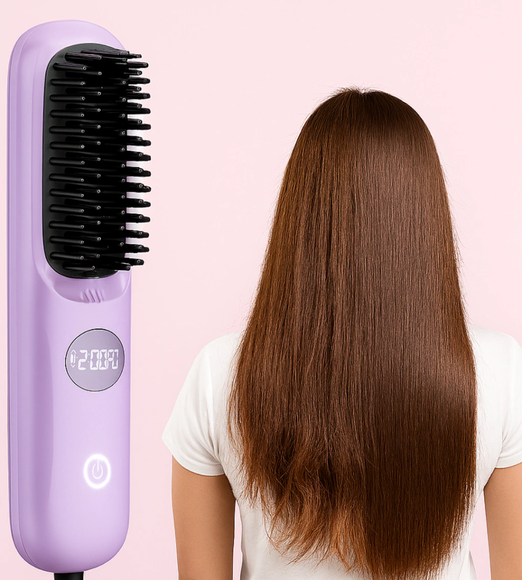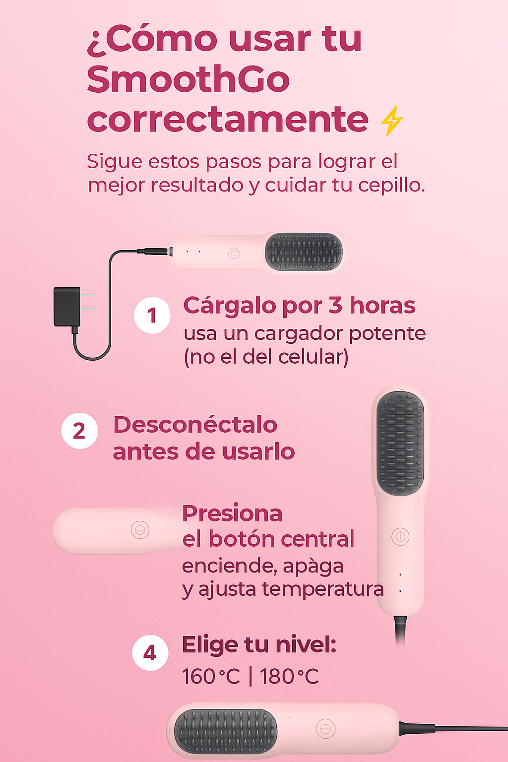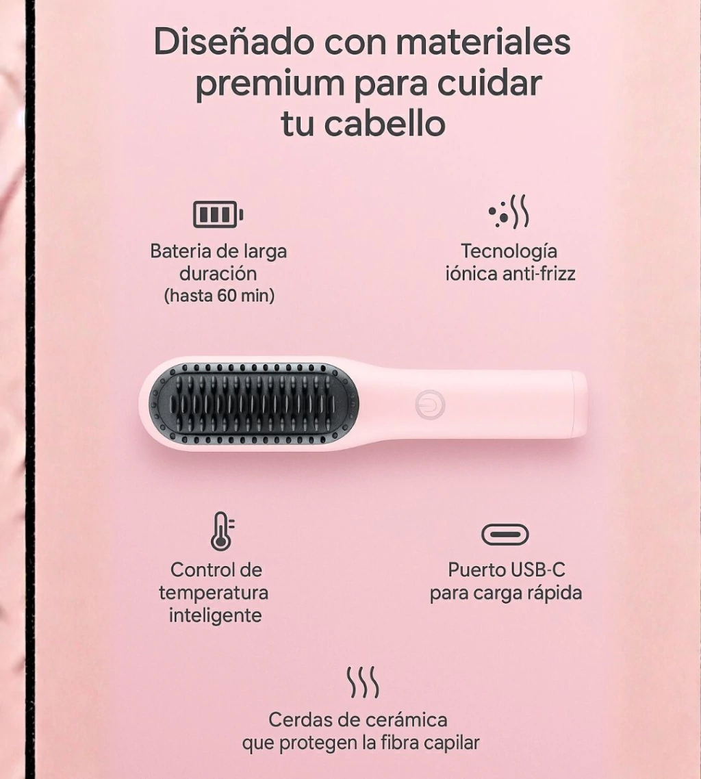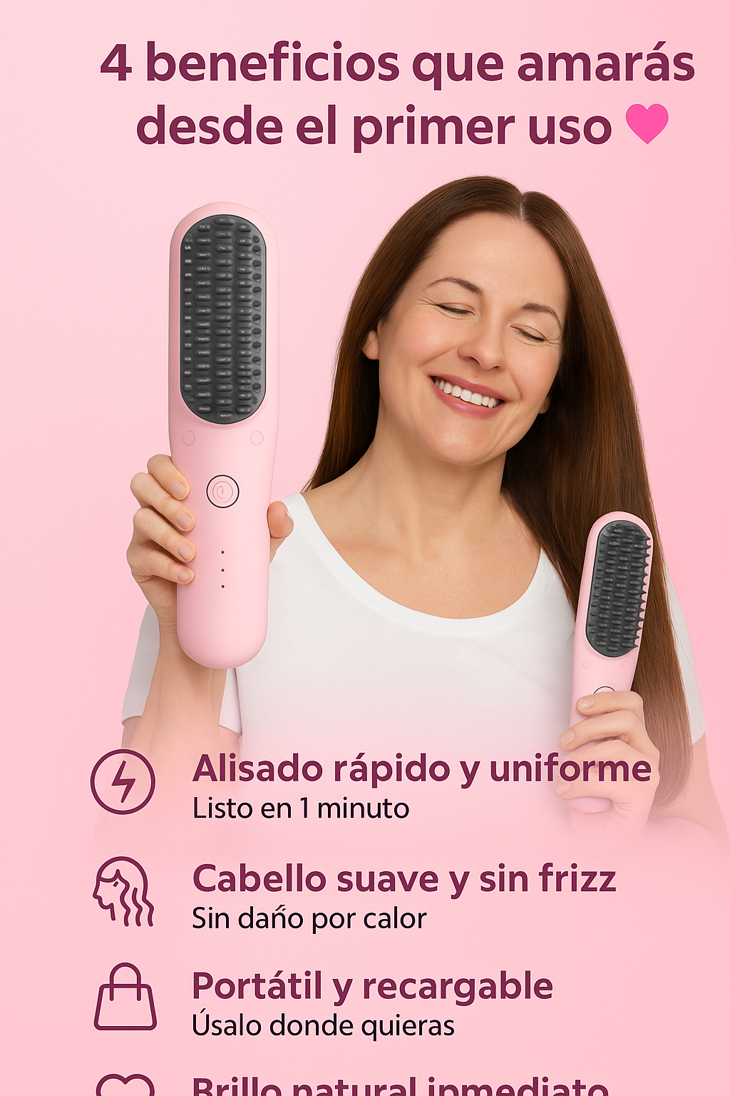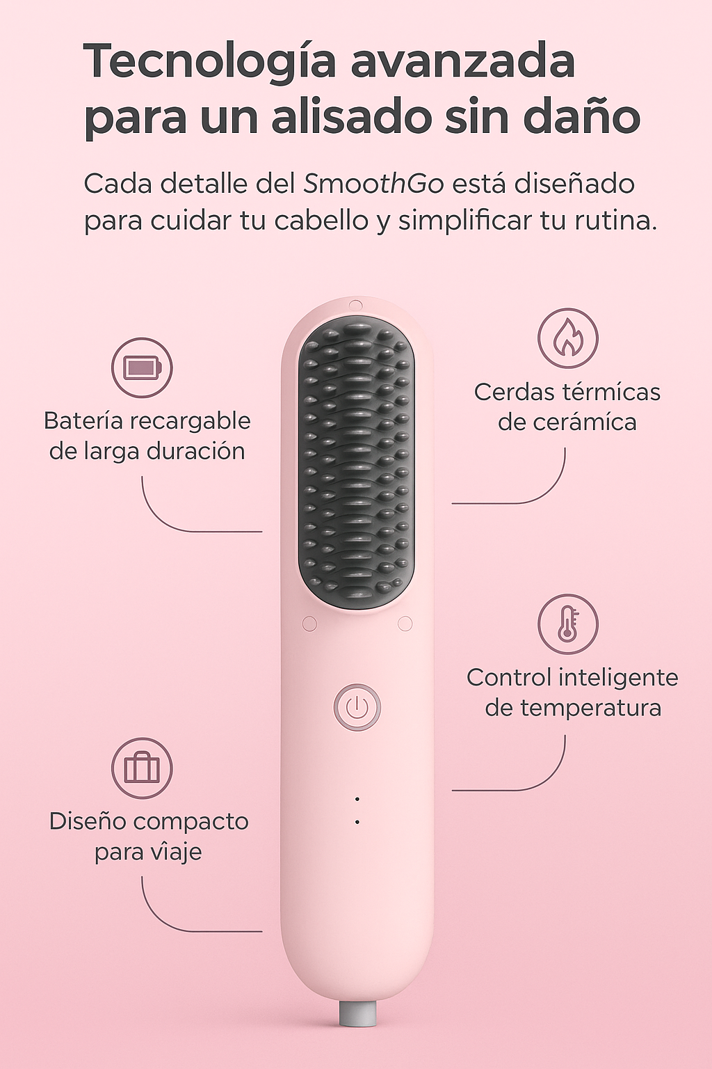 Olvidate de los cables y del frizz. Con el nuevo SmoothGo, llevás un salón de belleza en la palma de tu mano: un cepillo alisador portátil con cerdas térmicas de última generación que deslizan suavemente, sellan la cutícula y dejan tu pelo liso, brillante y sin estática en cuestión de minutos. Ideal para retoques exprés antes de una reunión, un viaje o una salida nocturna.