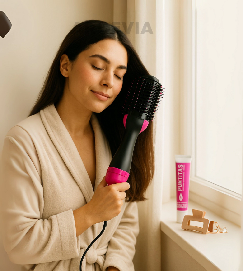 Control del frizz: el brushing con aire y el aceite del pack ayudan a alinear fibras y sellar humedad.