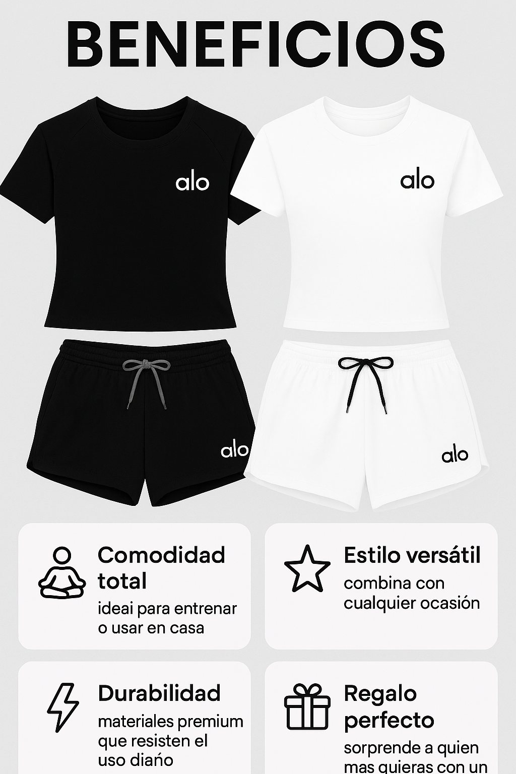 El Conjunto Deportivo Alo está diseñado para acompañarte en cada momento del día, ya sea entrenando, saliendo a caminar o disfrutando de tu tiempo libre. Su tejido ligero y respirable se adapta a tu cuerpo brindando frescura y comodidad sin perder estilo. Disponible en negro y blanco, es un básico imprescindible en tu guardarropa deportivo.